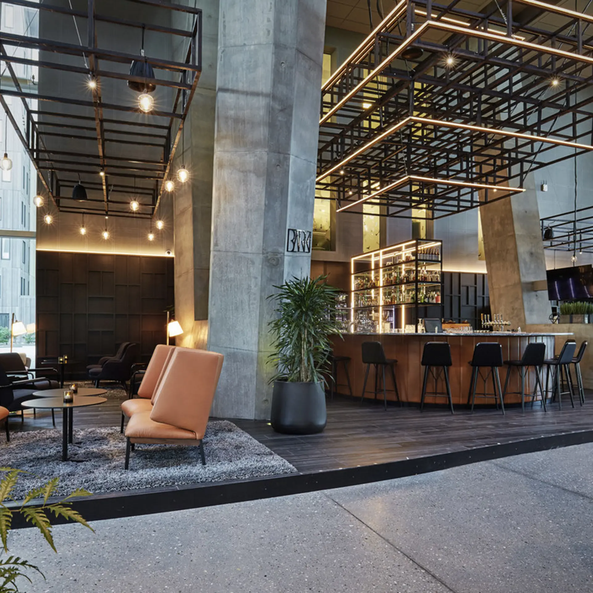Uanset om det gælder byggeri, indretning eller daglig drift, fungerer vores grundvandsbaserede opvarmnings- og kølesystem, solcellebeklædte facader og integrerede madaffaldssystem som konkrete eksempler på vores engagement i at tilbyde Responsible Hospitality.