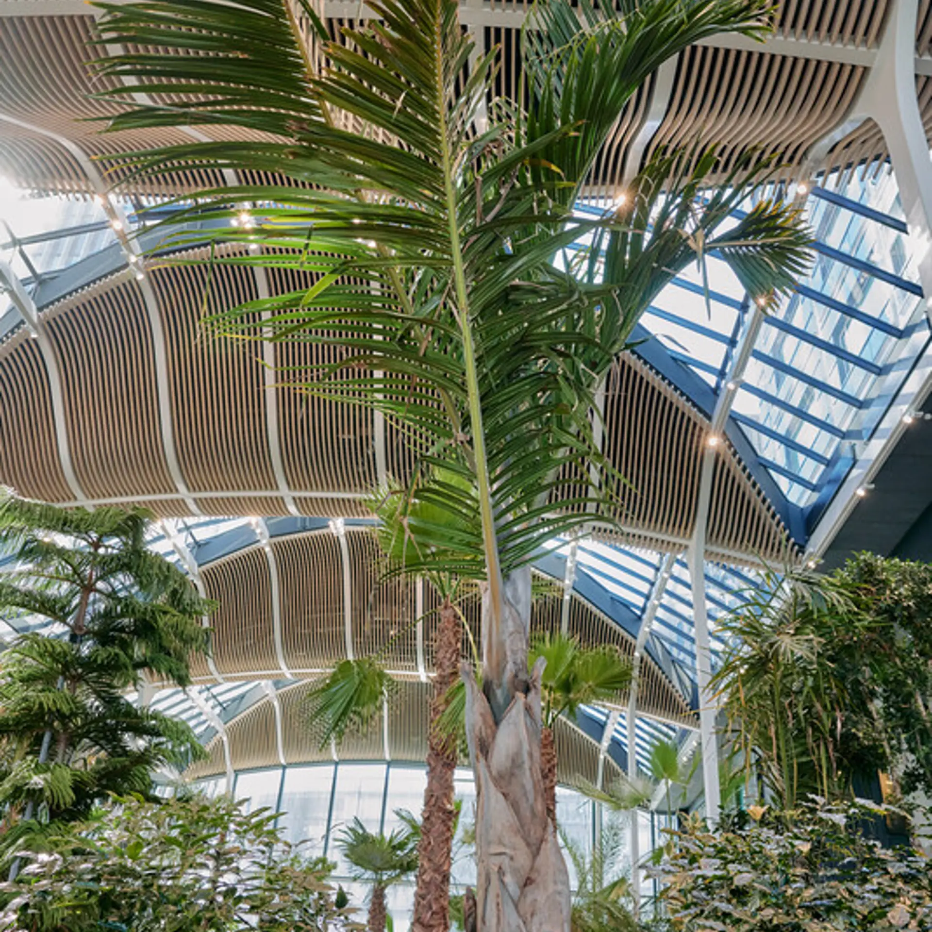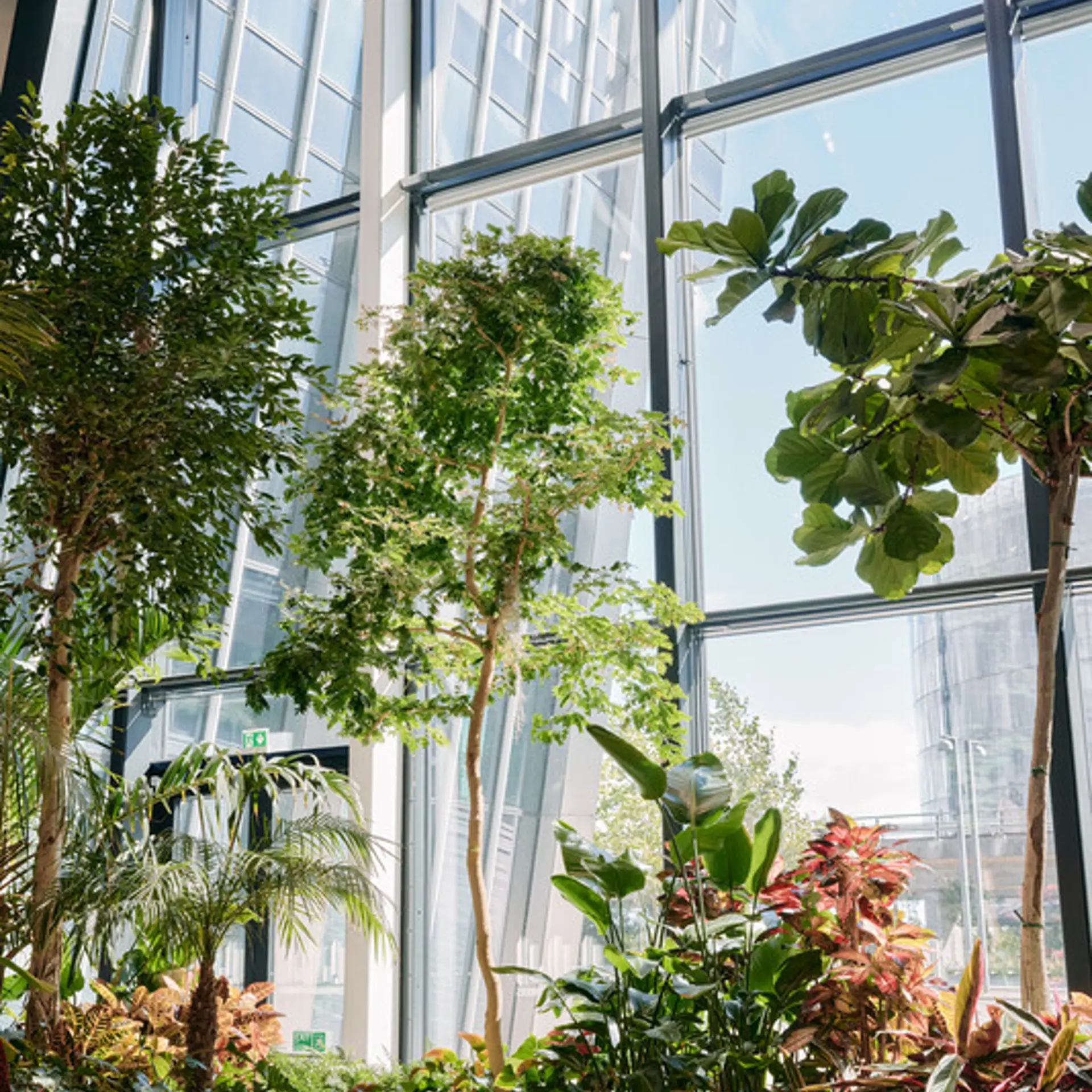 Vores 1.400 m² store atrium bringer naturen indenfor og skaber et naturligt, sundt indeklima.